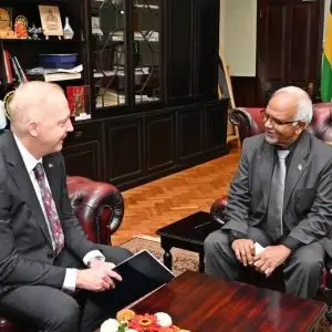 His Excellency Mr Henry V. Jardine, Ambassador of the United States of America to Mauritius, paid a farewell call on His Excellency Mr Dharambeer Gokhool..